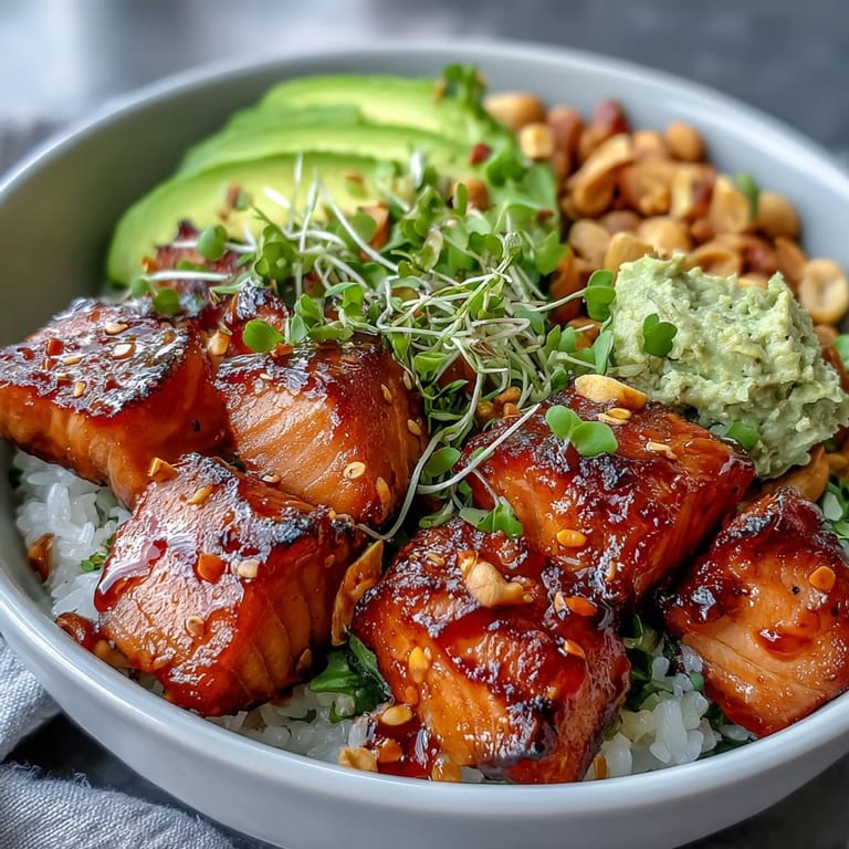 The beauty of a bowl is that you can adapt it to who's eating without losing what makes it work. Swap the salmon for marinated tofu if you're cooking vegetarian, use cashews instead of peanuts for someone with allergies, or add pickled ginger if you want an extra layer of flavor. The marinade, the seasoned rice, and the balance of textures—those are the non-negotiables that keep it feeling intentional rather than thrown together.
