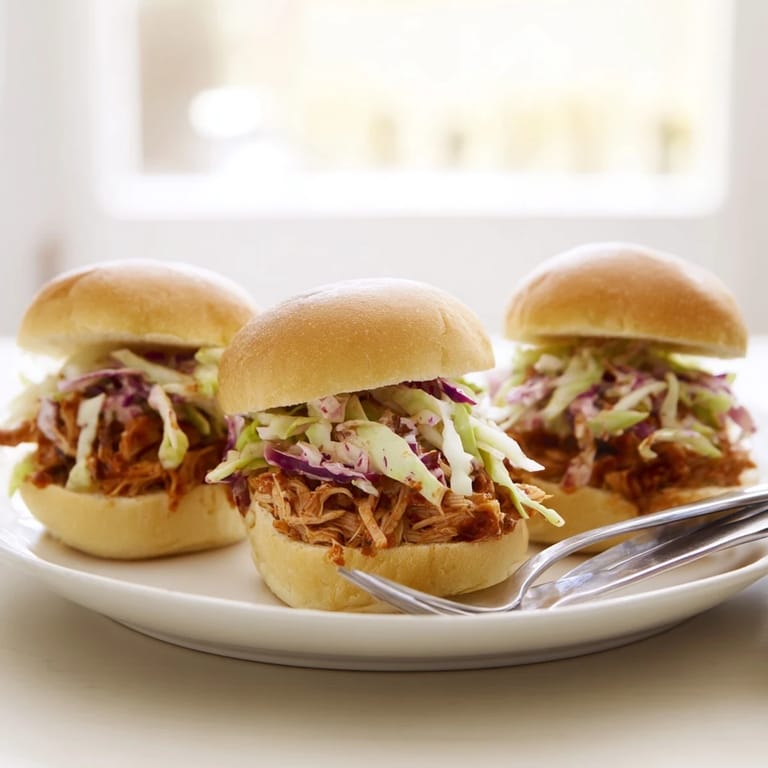 On nights when I dont have time to cook chicken from scratch, I grab a rotisserie chicken from the store and shred it straight into the BBQ sauce. It cuts the cook time in half and still tastes homemade. You can also prep the slaw a few hours ahead and keep it chilled, it actually gets better as it sits. Just assemble the sliders right before serving so the buns stay crisp.