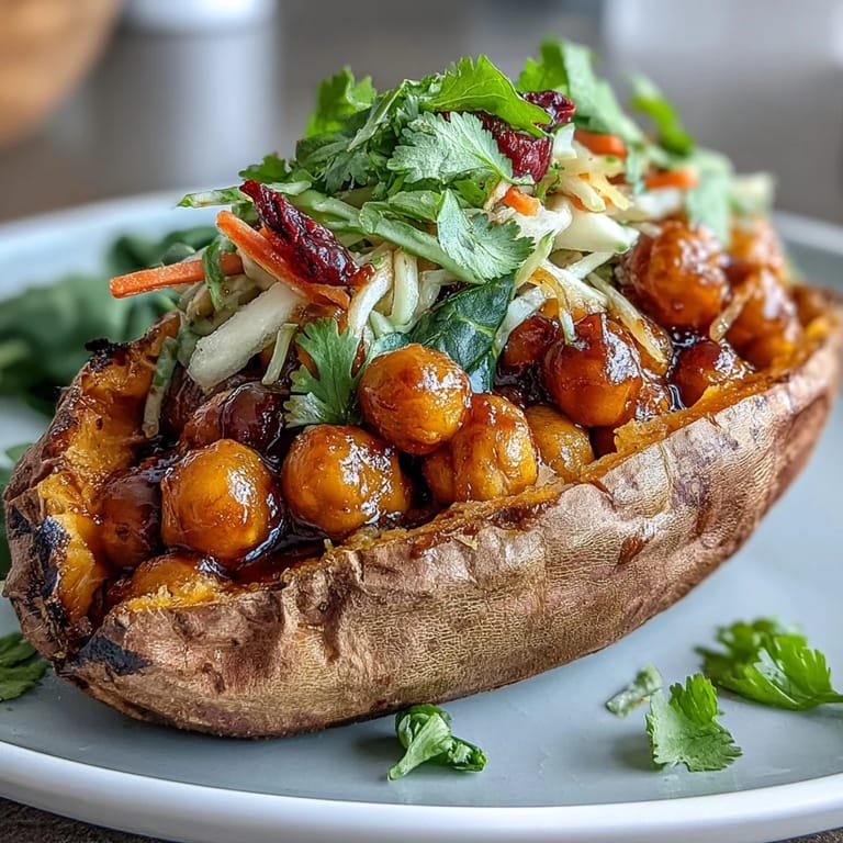 Pin It Imagine a cozy evening with a dish that combines comfort and vibrant flavors. These BBQ Chickpea Stuffed Sweet Potatoes offer the perfect balance of sweet, smoky, and tangy notes. The tender orange flesh of roasted sweet potatoes creates a natural vessel for protein-packed chickpeas smothered in rich BBQ sauce, while the crisp, colorful slaw adds a refreshing crunch and brightness to every bite.