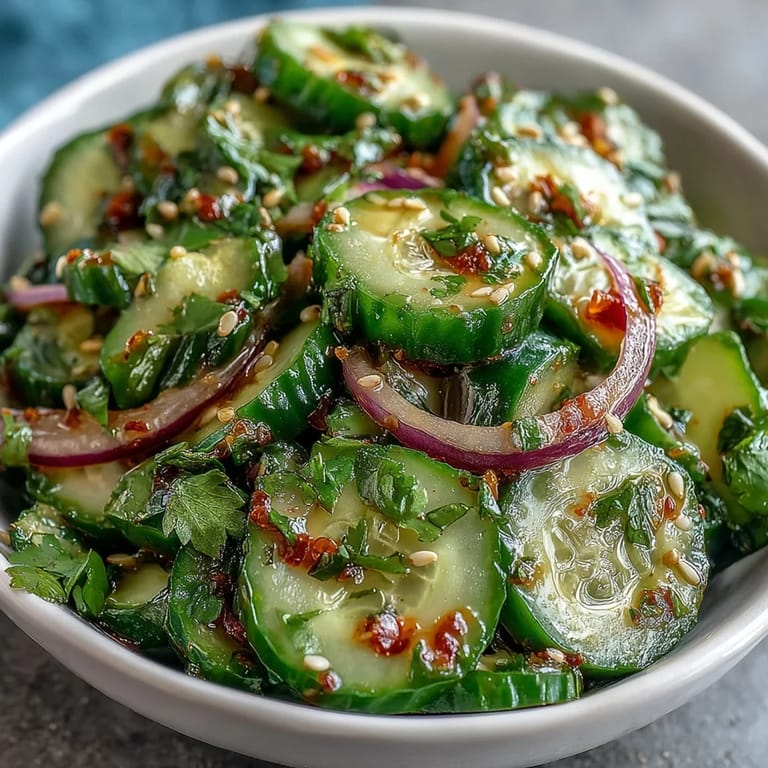 Pin It Last summer, my neighbor showed up at a cookout with this salad in a glass bowl, and I watched people reach for it before touching anything else on the table. She swore it took her ten minutes flat, and when I finally asked for the recipe, she laughed and said it was just cucumbers and a dressing that somehow made everyone ask for seconds. That moment taught me that the simplest dishes often steal the show, especially when they're this bright and alive on your tongue.