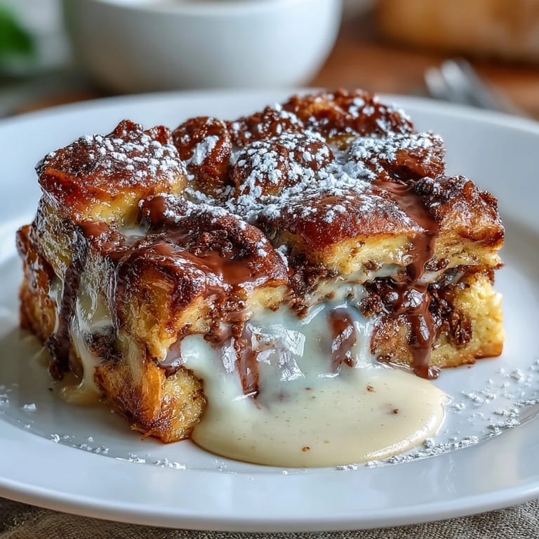 Pin It Imagine waking up to the aroma of buttery croissants baked to golden perfection, mingling with the rich scent of melted chocolate and vanilla-kissed custard. This Chocolate Croissant Bread Pudding transforms simple, day-old croissants into a decadent brunch centerpiece that feels both indulgent and comforting. It's the kind of dish that turns an ordinary morning into a special occasion, whether you're hosting friends or treating yourself to a cozy weekend breakfast.