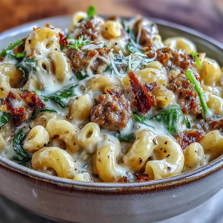 Pin It There's something about the way cream transforms into something almost luxurious when you add sun-dried tomatoes and spinach that made me obsess over this dish one rainy Tuesday. I was standing in my kitchen, staring at a box of elbow macaroni and some leftover sun-dried tomatoes, when it hit me that I could make something that tasted like a fancy Italian restaurant without leaving my apartment. The first time I combined those chewy pasta shells with the rich, tangy sauce and melted cheese, my roommate actually paused mid-conversation to ask what smelled so good. It became the dish I'd make whenever I needed comfort but wanted to feel a little fancy about it.