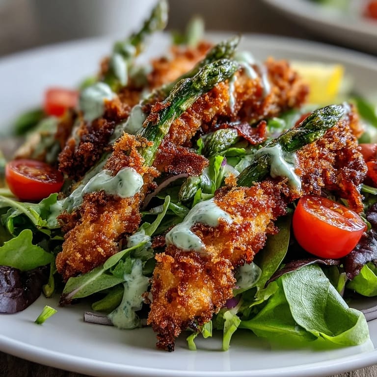 My friend Sarah came over on a summer afternoon when we hadn't seen each other in months, and I threw this salad together because it felt manageable while we caught up. She took one bite of the crispy asparagus and literally paused mid-sentence, which told me everything I needed to know. We ended up eating on the back porch while golden hour light hit the plates just right, and it became the kind of simple meal that somehow marks a moment you remember.