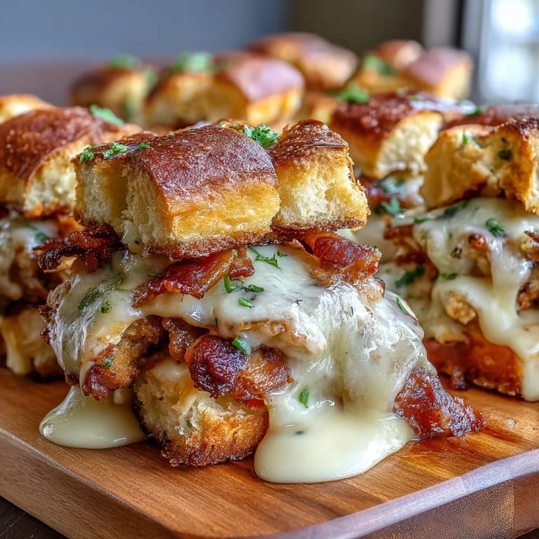 These sliders are wonderfully versatile. Substitute ham for turkey if you prefer a sweeter, saltier profile—it's a delicious twist that stays true to the Hot Brown spirit. For a lighter version, use turkey bacon and reduce the amount of heavy cream in the Mornay sauce. You can also make these sliders vegetarian by replacing the turkey and bacon with roasted mushrooms and sun-dried tomatoes. If you're serving a crowd with different tastes, prepare half with turkey and half with ham. For extra indulgence, add a layer of caramelized onions beneath the turkey or mix some Dijon mustard into the Mornay sauce for a subtle tang.