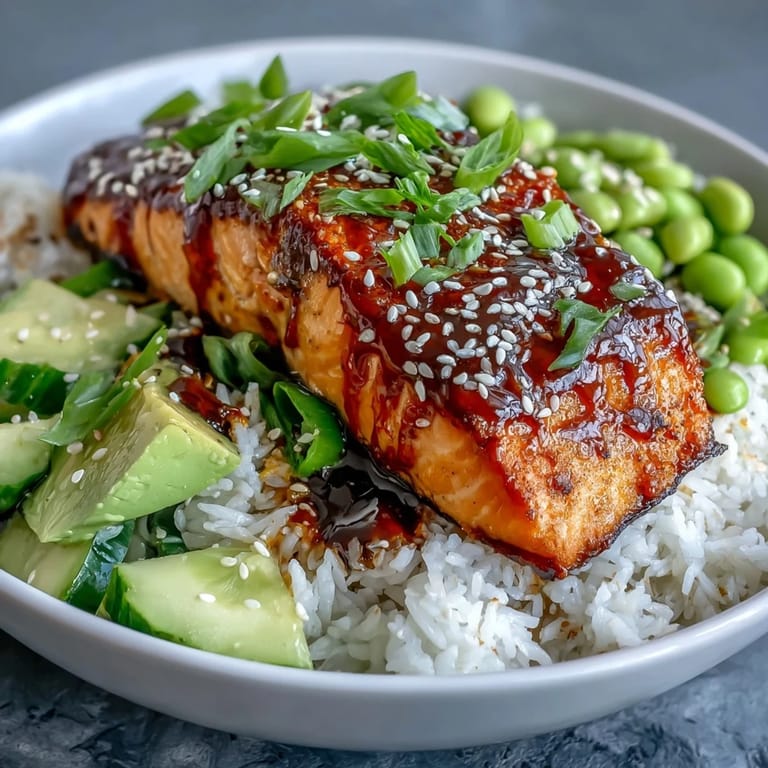 I've learned that this bowl is forgiving and flexible, which is part of why I make it so often. Some nights I'm in the mood for more heat, so I add extra sriracha to the mayo or skip the sweetness of the honey glaze entirely. Other times I'm craving crunch, so I add thinly shredded carrots or sliced radishes instead of—or in addition to—the cucumber. You could swap quinoa or brown rice for the jasmine, use whatever fresh vegetables you have on hand, or even grill the salmon instead of pan-frying it if the weather permits.