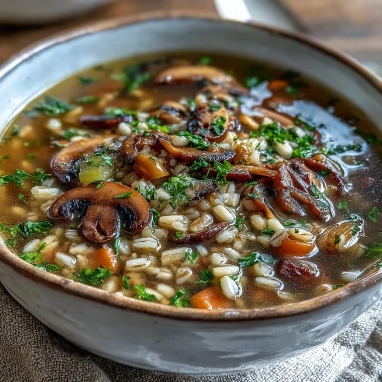 Pin It There's something about the smell of mushrooms hitting hot oil that stops me mid-thought every time. Years ago, a friend brought over a thermos of this soup on a particularly gray November afternoon, and I remember being struck by how something so simple—just vegetables, barley, and broth—could taste so complete. The earthiness of the mushrooms mixed with the chewy resistance of the barley felt like a hug in a bowl, and I've been making it ever since.