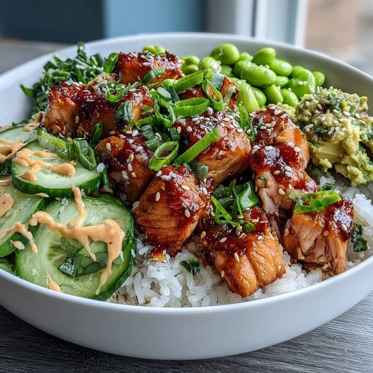 Whether you are looking for a pescatarian-friendly dinner or a fresh lunch option, this bowl offers a delightful combination of textures—from the crisp cucumber to the buttery avocado and the slightly caramelized salmon.