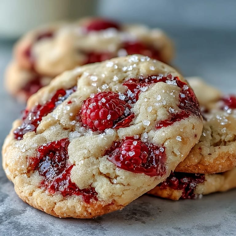 Pin It A cracked carton of raspberries sat on the counter, half of them already too soft to eat plain. I didn't want to waste them, so I started folding them into basic cookie dough, half expecting mush. What came out of the oven instead was something I hadn't planned on: pale pink cookies with pockets of jammy sweetness and edges that stayed tender for days. That batch disappeared before dinner, and I've been making them ever since.
