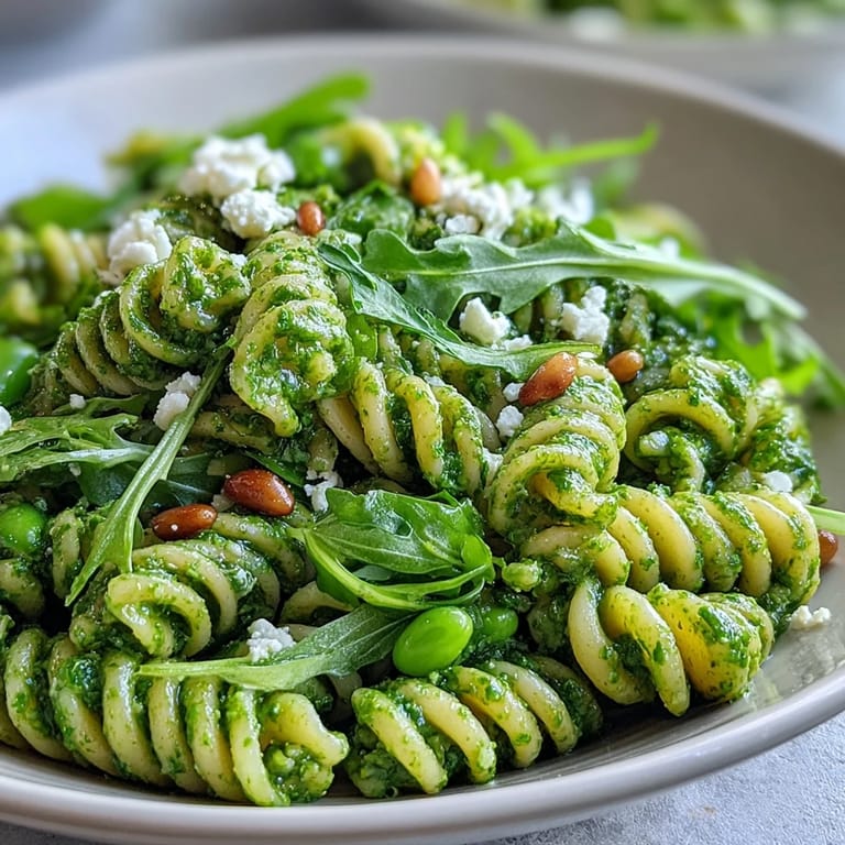 Pin It Spring Green Pesto Pasta Salad is a celebration of the season's freshest flavors. This vibrant dish combines short pasta with a luscious homemade basil pesto, sweet peas, and peppery arugula, making it an ideal choice for refreshing spring gatherings, potlucks, or sun-drenched picnics.