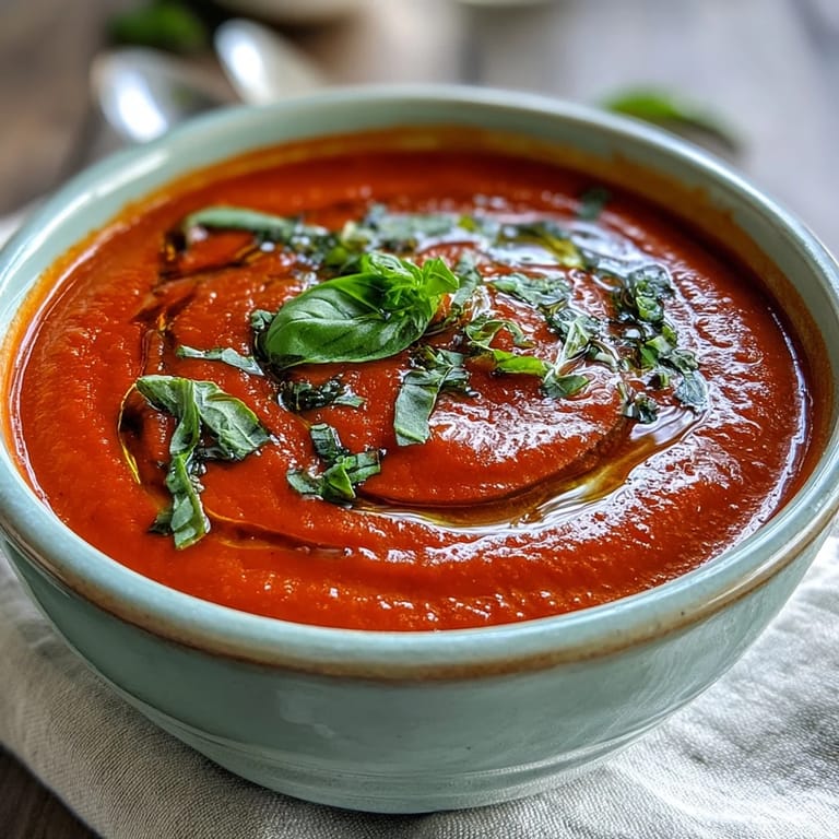 Pin It Experience the essence of Italian comfort with this silky, vibrant Tomato and Basil Soup. Perfect as a cozy appetizer or a light, nourishing meal, this dish transforms simple ingredients into a sophisticated bowl of warmth. The combination of slow-cooked tomatoes, aromatic garlic, and fresh basil creates a depth of flavor that is both refreshing and deeply satisfying.