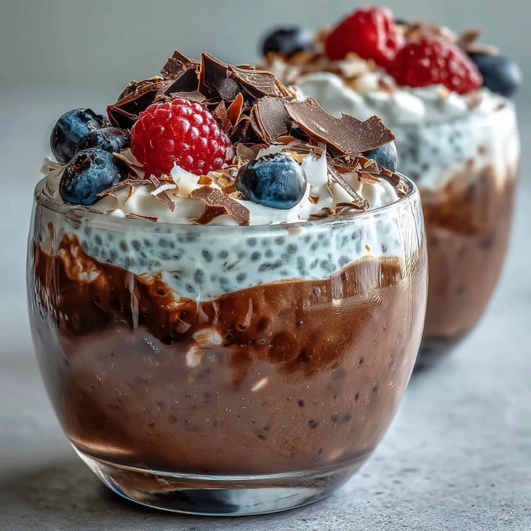 - Crown each parfait with fresh berries, maybe some shaved dark chocolate, and toasted coconut flakes if you're feeling it. These toppings are where color happens and where you can taste fruit brightness cutting through all that chocolate richness.